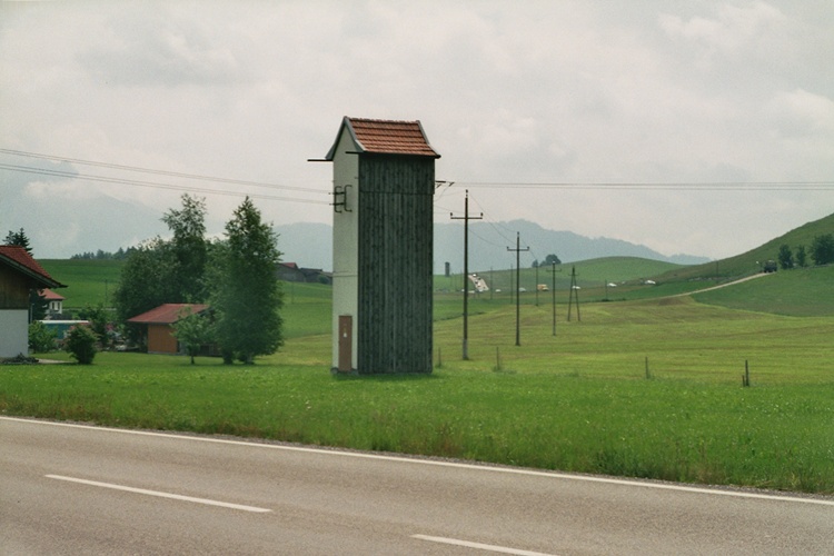 Eine schöne alte Turmstation, vom Bodensee-Königsee-Radweg aus fotografiert.