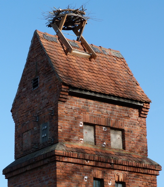 Der Storchennest-Trafoturm Ziemendorf Fotos: Pit Fischer, 28. April 2012 Auf dem Dachfirst wurde auf einer Halterung ein Wagenrad befestigt und so die Grundlage für ein Storchennest geschaffen, das zum Zeitpunkt der Fotoaufnahmen im Jahr 2012 noch nicht besiedelt war. Deshalb hier unsere Bekanntmachung an Störchinnen und Störche im Altmarkkreis: In Ziemendorf ist ein ausbaufähiges Eigenheim zu haben! Im nahegelegenen Arendsee gibt es zudem leckere Frösche. Eine offene Luke im Giebel lässt vermuten, dass auch das Turminnere für eine Neubesiedelung durch Vögel und Fledermäuse zur Verfügung steht. Stillgelegte alte Trafohäuschen eignen sich ausgezeichnet als Tierwohnungen und "Artenschutztürme", wir konnten bereits etliche Beispiele hierfür auf unserer Naturschutz-Seite dokumentieren. Die Storchen-Turmstation Ziemendorf ist auch Bildband von Illo-Frank Primus, Geschichte und Gesichter der Trafostationen auf Seite 335 mit einem ganzseitigen Foto vertreten.