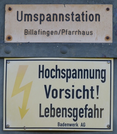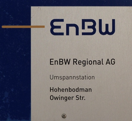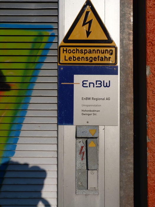 Ende vom Pfarrhofweg nicht weit vom Rathaus. An der Trafostation der ehemaligen Badenwerk AG (heutige EnBW) sind anhand