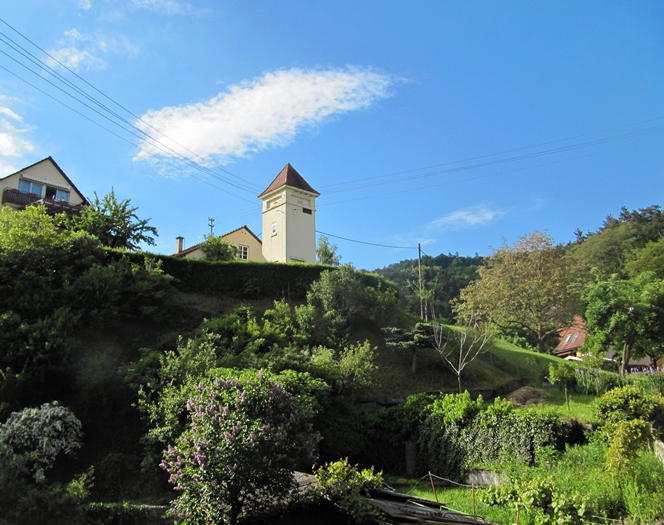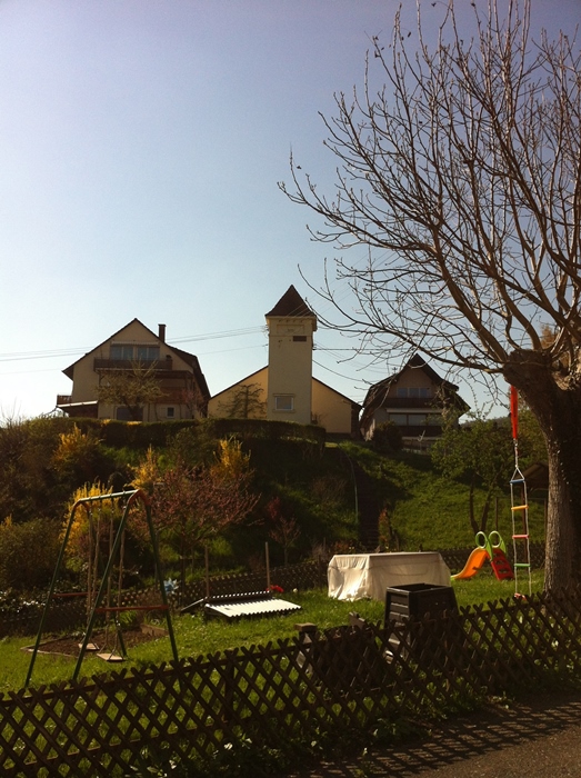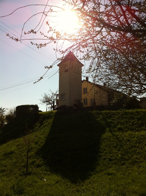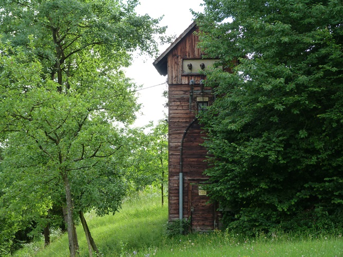 Nur wenige hundert Meter vom Bodenseeufer entfernt tut sich hier eine völlig andere, fast alpin anmutende Welt auf, in die der hölzerne Trafoturm wie selbstverständlich hineinpasst. Man würde sich nicht wundern, hier Kuhglocken zu hören. Im grünen Tal murmelt der Bach, plätschert vom Hödinger Tobel hinunter zum See, um sich dann über den Rhein auf den langen Weg zur Nordsee zu machen.
