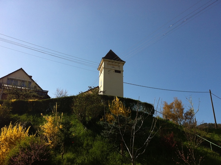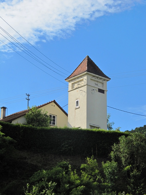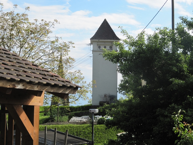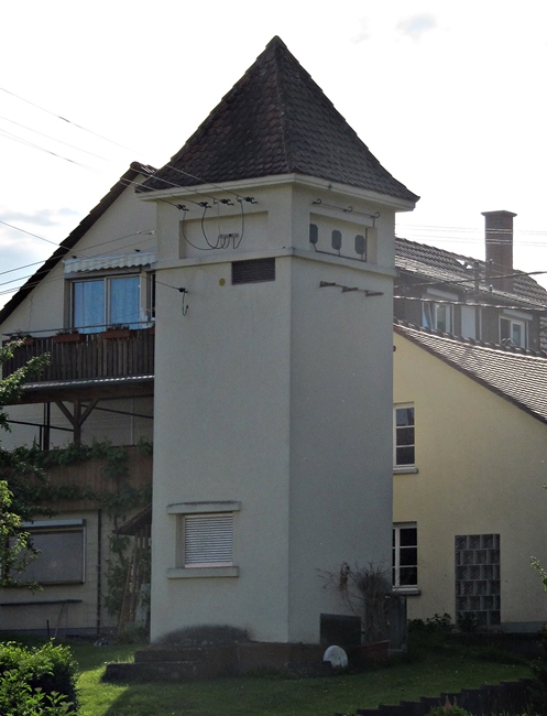 Im Sipplinger Wohnviertel am hier steil ansteigenden Bodenseeufer, malerisch eingebettet in die Gärten zwischen der Rathausstraße, Am Brunnen und der Klosterstraße liegt dieser klassische Trafoturm. Er versorgt seine Kundschaft immer noch über traditionelle Freileitungen.