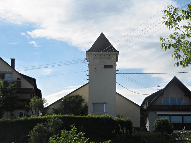 Eine weitere Holz-Turmstation auf Fachwerkbasis, Baujahr 1922, konnten wir bereits im oberschwäbischen Baind dokumentieren. Im Unterschied zur Station Süßenmühle ist dort allerdings im Erdgeschoss das Fachwerk ausbetoniert.