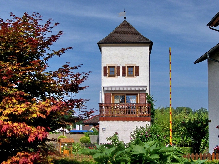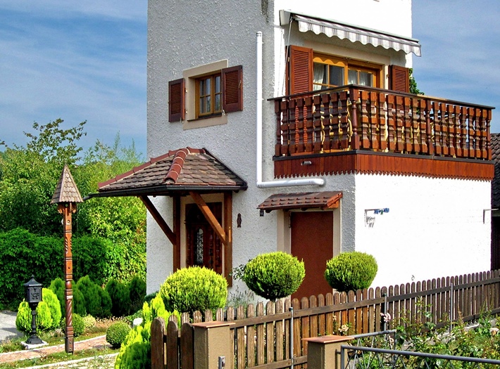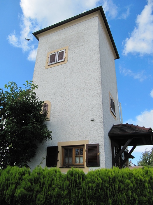 ![]() ![]() ![]() ![]() ![]() ![]() ![]() ![]() ![]() ![]() ![]() ![]() ![]() ![]() ![]() ![]() ![]() ![]() ![]() ![]() ![]() ![]() Das Oberuhldinger Trafohäuschen von 1954 wurde zum Feriendomizil Fotos obere Reihe: Diethard Nowak, 2008 Mittlere Reihe: Pit Fischer und Wolfgang Radau, August/September 2012 Untere Reihe: Hubert Weiß, vor dem Umbau 1999 Fahren wir auf der B31 von Überlingen Richtung Meersburg und biegen in Uhldingen auf die L201 Richtung Mühlhofen ab, kommen wir nach kurzer Fahrt in Oberuhldingen an. Am Ende der Alten Poststraße steht dieses putzige Häuschen mit der Hausnummer 44. Es ist ein ehemaliges Transformatorenhaus der Badenwerk AG (eine sogenannte Turmstation), erbaut 1954, mit einem Anbau aus dem Jahr 1961 (siehe Fotos untere Reihe). In der überdurchschnittlich großen Trafostation waren ursprünglich zwei Transformatoren untergebracht (2. Bild von links untere Reihe, von außen durch die offene Tür fotografiert). Nachdem die Turmstation vom Netz gegangen war, wurde sie im Jahre 1999 vom Bauingenieur Hubert Weiß aus Böblingen samt dem 77 Quadratmeter großen Grundstück von der EnBW (Nachfolgeunternehmen des Badenwerks) erworben und zum Miniwohnsitz umgebaut: eine wirklich nachahmenswerte Umnutzung, wie wir sie bereits in etlichen Beispielen auf unserer Themenseite Umfunktionierung von Trafohäuschen dokumentieren konnten. Hubert Weiß verwandelte in 100 Prozent Eigenarbeit die ehemalige Umspannstation in ein Feriendomizil. Bei einer Grundfläche von nur 3 x 3 Quadratmetern (ohne Anbau) war hier Kreativität und Ideenreichtum gefragt. Nach Maß wurden sogar handgeschnitzte Möbel angefertigt, ein Hobby des Bauingenieurs. So entstanden auf 3 Stockwerken 30 Quadratmeter Wohnraum, dazu noch ein Badezimmer im Anbau und ein 6 qm großer Balkon. Im Jahr 2004 suchte der TV-Sender Pro 7 in seiner Mittagspausensendung "Avenzio - schöner leben" in einem Wettbewerb das "pfiffigste Minihäuschen der Republik". Und tatsächlich gewann Hubert Weiß mit seinem Trafohäuschen von 12 Kandidaten den 1. Preis (siehe hierzu den Südkurier-Artikel vom 4.4.2004 unten bei den Pressestimmen). Im Sommer 2007 erwarb Hubert Weiß ein altes Bauernhaus in Irndorf nördlich von Beuron an der Donau und verkaufte das Trafohäuschen an Jeanette Furch aus Nagold, die es jetzt unter www.rapunzel-turm.de als Ferienhaus "Rapunzel-Turm" vermietet. Ausführliche Dokumentation: Trafohäuschen in der Alten Poststraße in Oberuhldingen von Diethard Nowak, mit freundlicher Genehmigung des Autors (PDF-Datei 1,1 MB). ![]() ![]() ![]() ![]() ![]() ![]() ![]() ![]() Liebevolle Details am Ferienhaus Rapunzel-Turm Fotos: Diethard Nowak, 2008 Das ca. 2,5 km vom Bodensee entfernte Feriendomizil ist liebevoll mit Details ausgestattet. Ein heimeliger überdachter Eingangsbereich mit separat aufgestellter stilvoller Glocken-Klingel (Foto ganz links) und Briefkasten, freundliche Fenster und rustikale Fensterläden aus Massivholz, das hübsche Holzgeländer des Balkons im 1. Obergeschoss, die Wetterfahne mit dem Baujahr "1954" auf dem Dach machen das Häuschen zu etwas ganz besonderem. Wer hier, zwischen Meersburg und Überlingen in einem der beliebtesten Feriengebiete Deutschlands spannende oder auch entspannte Urlaubstage verbringen möchte, kann sich auf der Webseite der Besitzerin Rapunzel-Turm - Das Ferienhaus am Bodensee informieren. Der Webseite entnehmen wir: Im Erdgeschoß befindet sich die Küche mit Essplatz, Einbauküche und Kühlschrank. Im Bad mit Fußbodenheizung (EG unterhalb des Balkons) befinden sich Dusche, Handwaschbecken und Toilette. Eine Treppe führt zum 1. OG - dem Wohnbereich. Hier befindet sich ein Klappsofa, Fernseher und Stereo-Anlage. Auf dieser Etage ist auch der Balkon mit ca. 6 qm und Markise. Eine weitere Holztreppe führt zum 2. OG - dem Schlafzimmer mit Doppelbett und Schrank. Auf dem Grundstück befindet sich auch ein PKW-Stellplatz, eingerahmt von einem kleinen Blumengärtchen. Oberuhldingen - Trafostation als Feriendomizil am Bodensee Das Trafo-Feriendomizil Oberuhldingen ist im Bildband von Illo-Frank Primus, Geschichte und Gesichter der Trafostationen auf den Seiten 402-403 mit Text und einem ganzseitigen Foto vertreten. Trafohäuschen in der Alten Poststraße in Oberuhldingen Buch: Diethard Nowak "Kleindenkmale in Uhldingen-Mühlhofen" S.185 f. und Anhang S.214, Meersburg Eigenverlag, 2008 Die Passagen über das Trafohäuschen dürfen wir hier mit freundlicher Genehmigung des Autors als PDF-Dokumentation zur Verfügung stellen. Avenzio sucht das Super-Häuschen Wettbewerb der Fernsehsendung "Avenzio - schöner leben", Pro 7, 2004 Hubert Weiß gewann mit seinem Trafohäuschen Oberuhldingen den 1. Preis Schöner wohnen auf 30 Quadratmetern Artikel von Hans-Peter Walter im Südkurier vom 4. April 2004 Wir zitieren aus dem Artikel: "Hubert Weiß und Josefina Schweiker bewohnen in Oberuhldingen ein Trafohäuschen mit drei Vollgeschossen. (...) Da Deutschland derzeit angeblich so gut wie alles sucht und nicht nur den "Superstar", will Pro 7 in seiner derzeitigen Mittagspausensendung "Avenzio - schöner leben" das pfiffigste Minihäuschen der Republik ausfindig machen. "Avenzio sucht das Super-Häuschen" heißt der Wettbewerb, zu dem der Privatsender zwölf Kandidatenhäuser ins Rennen schicken will. Hubert Weiß und Josefina Schweiker - die stolzen Besitzer eines Trafohäuschens in Oberuhldingen - werden dabei mit von der Partie sein. (...) Bedingung ist, dass die Wohnfläche des allein stehenden Minigebäudes weniger als 100 Quadratmeter ist. Diese Gefahr besteht bei Hubert Weiß und Josefina Schweiker keinesfalls. Sie bewohnen auf drei Etagen quasi dreimal neun Quadratmeter - ohne Nebenräume und Balkon, da können noch einmal fünf dazukommen. Zwei Wochen nach der Anfrage beim Sender drängelte sich in dieser Woche auch schon ein Filmteam in der Enge des bewohnten Trafohäuschens - mit Kameramann und Redakteurin, Architekt und Deko-Spezialistin, um die Atmosphäre des be