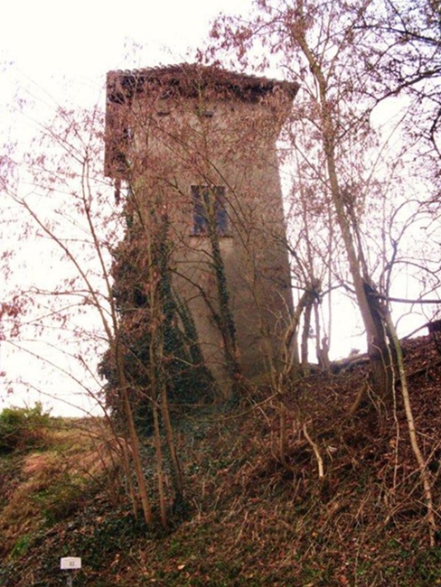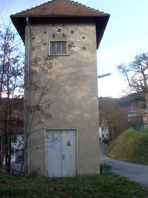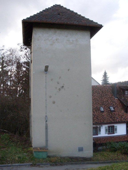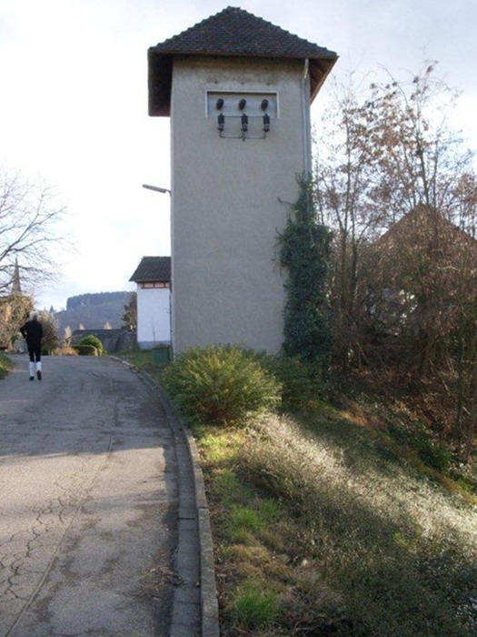 Die alte leerstehende Trafostation mit hübschem Pyramidendach steht Im Bohl, oberhalb der Hauptstraße und der Campingplätze.