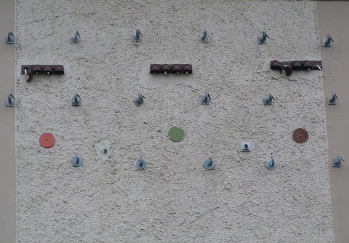 Die unteren Ösen kamen später dazu und dienten der Anbindung von Straßenbeleuchtungsleitungen. Heute reicht ein