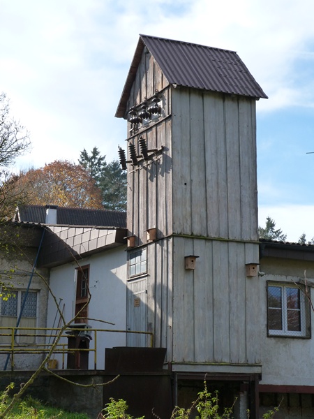 Hier haben wir es mit dem Sonderfall zu tun, daß von der zum Kleinkraftwerk gehörenden Trafostation der Strom