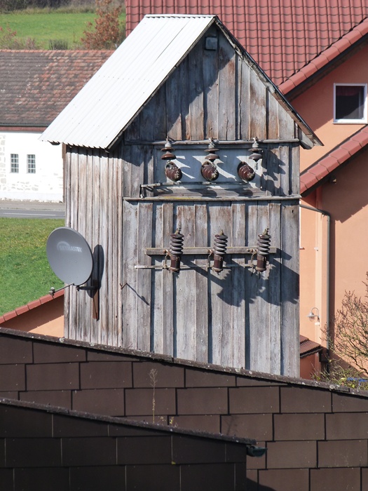 Die Holzbauweise ist bei Trafohäuschen selten anzutreffen.