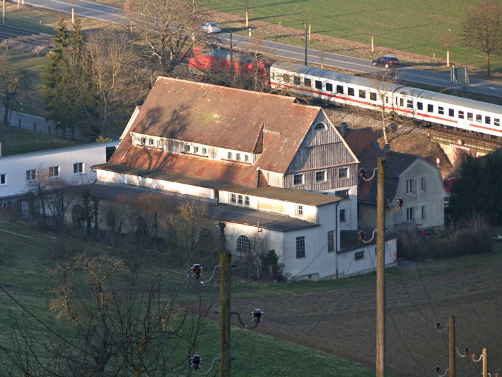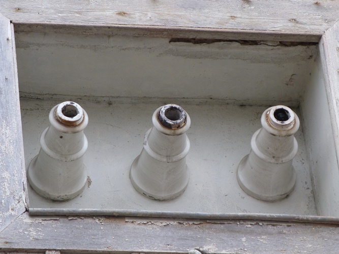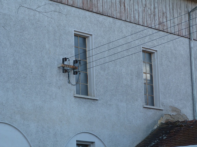 Diese Webseite wurde mit Stand Mai 2016 eingestellt [ weiterlesen ] ![]() ![]() ![]() ![]() ![]() ![]() ![]() ![]() ![]() ![]() ![]() ![]() Das alte Elektrizitätswerk (Umspannwerk) Singen am Hohentwiel Alle Fotos auf dieser Seite: Pit Fischer, 16. März 2012 Das alte E-Werk befindet sich am nordwestlichen Stadtrand von Singen, Richtung Autobahnauffahrt A81 in der Duchtlinger Strasse 1, direkt bei der ausgeschilderten Abzweigung nach Duchtlingen und zum Hohentwiel. Einige Meter entfernt verläuft die Bahnlinie nach Engen und die Radolfzeller Aach. Das denkmalgeschützte Gebäude ist in dieser Region ein einzigartiges Dokument der Industriearchitektur des frühen 20. Jahrhunderts und technikgeschichtlich wohl das interessanteste Zeugnis der Hegau-Elektrifizierung (siehe auch weiter unten: Das E-Werk Singen als Kulturdenkmal). Der Strom wurde vom Wasserkraftwerk Laufenburg (Wikipedia) am Hochrhein geliefert und von hier in die Industriestadt Singen und die Hegau-Gemeinden verteilt. Viele der alten Trafostationen, die wir bereits auf unseren Seiten aus dem Landkreis Konstanz vorgestellt haben, bezogen von hier die Elektrizität. Zum Begriff E-Werk: Das Elektrizitätswerk ist die frühere Bezeichnung sowohl für ein Kraftwerk zur Stromerzeugung als auch für ein Umspannwerk. Beim E-Werk Singen handelt es sich um ein Umspannwerk. ![]() ![]() Diese beiden Fotos geben einen Eindruck von der schönen Lage des E-Werks im Land der Hegau-Vulkane. Auf dem linken Bild ist der Hohentwiel zu sehen. Das rechte Foto wurde vom Hohentwiel aus gemacht: am rechten Bildrand das Umspannwerk, am linken Bildrand der Hohenkrähen. ![]() ![]() ![]() Auf diesen Bildern ist die Rückseite des Gebäudes zu sehen. Hier wurde Hochspannung vom Kraftwerk Laufenburg über das Überlandnetz eingeführt und intern in Mittelspannung (hier: 10 bis 15 KV) umgewandelt. In der Schweiz wurde damals eine Hochspannungsebene von 47 KV verwendet, in Deutschland waren es 50 KV (Vorläufer der 110KV-Ebene). Auf den Abbildungen sieht man den ursprünglichen Eingang der Hochspannungsebene. Darauf deutet der große Abstand der drei einzuführenden Phasen hin (jede hat ein eigenes "Fenster") sowie die Verlängerungsstangen an der Hauswand. Daran waren dann in genügendem Abstand zur Dachkonstruktion (Dachrinnen, Ziegel) Abspannketten befestigt. Es sind mindestens 2 Drehstromkreise 47 KV zu je drei Leitern dort angekommen. Ein weiterer Eingang war als Reserve vorgehalten worden. ![]() ![]() ![]() ![]() ![]() ![]() ![]() ![]() An der rechten Stirnwand sind weitere Armaturen zu sehen, deutlich jüngeren Datums als der Rest am Haus. Ohne Schaltschema kann hier nur vermutet werden, dass in späterer Zeit eine zusätzliche Abzweigung bzw. Einspeisung auf der 47 KV Ebene über ein Erdkabel angebracht wurde. ![]() ![]() ![]() ![]() ![]() ![]() ![]() ![]() ![]() ![]() ![]() ![]() ![]() ![]() ![]() ![]() Von den im Innern des Gebäudes befindlichen Sammelschienen (Wikipedia) konnten weit über zehn Fernleitungen versorgt werden. Nachdem in diesem E-Werk eine 10KV-Ebene, eine 15KV-Ebene sowie eine Hochspannungseinspeisung vorhanden war, muss es mindestens eine Sammelschiene für je eine Spannungsebene gegeben haben, also zusammen drei. Einige Leitungsabgänge sind noch erhalten, wie auf den Abbildungen zu sehen ist. Auf den alten Schildern ist zu erkennen, wohin die Mittelspannungsleitungen von hier abgingen: u.a eine 10 kV-Leitung zur Firma Maggi in Singen, eine 15 kV-Leitung zum Randen und eine 15 kV-Leitung nach Immendingen. Nicht nur die Stahlträger zeigen, dass es sich hier um eine Leitungsführung der ersten Stunde handelt. Die hier abgebildeten weißen Stützenisolatoren mit den Doppelkopfrillen sind nach Schweizer Bauart und nennen sich in dieser Bauform bis heute "Beznauisolator". Man merkt, dass in dieser Gegend sehr starke Einflüsse aus der Schweiz vorhanden waren. Der Beznau-Typ hat im Gegensatz zum andernorts in dieser Epoche verbauten Delta-Isolator nur einen Schirm, der Delta-Typ hat drei. Auch bei der Trafostation "Wildes Ried" von 1918 im Freilichtmuseum Kürnbach wurde der Beznau-Typ verwendet, obwohl der Landkreis Biberach ein Stück weiter von der Schweiz entfernt ist. Die daneben abgebildeten dunklen Isolatoren sind einige Jahre jünger als die weißen Beznautypen. Ohne sie aus der Nähe betrachten zu können lässt sich der Unterschied zwischen dem Massiv-Stützenisolator aus den 20er Jahren und seinem Nachfolger, dem Vollkern-Stützenisolator VS mit losen Stützen und Splintsicherung (ab den 50er Jahren) nicht eindeutig bestimmen. Der dunkle Beznautyp wird ja heute noch verbaut und wurde hier im Laufe der Zeit bestimmt mal erneuert. (siehe auch in unserer kleinen Rubrik über Isolatoren) ![]() ![]() ![]() ![]() ![]() ![]() ![]() ![]() Hier ist das benachbarte Wärterwohnhaus mit dem Hausnummernschild Duchtlingerstraße 1 zu sehen. Die Bilder der unteren Reihe zeigen den Niederspannungsübergang vom Umspannwerk zum Dachständer des Wärterhauses, zur Verwendung kamen hier Schäkelisolatoren jüngeren Datums. Ein weiteres Detail: die Außenlampe an der Ecke des E-Werks (Bild oben links und unten rechts). ![]() ![]() ![]() ![]() ![]() ![]() ![]() ![]() Nicht weit von der Singen zugewandten Stirnseite des Gebäudes führt eine Freileitungs-Trasse zum Hohentwiel hinauf, die hier mit einem Übergangsmast vom Erdkabel auf die Freileitung beginnt. Auf den Detailabbildungen sieht man in der Mitte einen ausgetauschten Überspannungsableiter. Er spricht an, bevor die Überspannung in das Erdkabel eindringt und dort Schaden entstehen kann. (siehe auch unsere Rubrik Freileitungen) Das Transformationsgebäude mit Wärterwohnhaus wurde 1912 nach Plänen des Singener Architekten Albert Hänssler für das Kraftwerk Laufenburg errichet. Die nordwestlich der Stadt am Fuße des Hohentwiel gelegene Anlage wird durch den mächtigen verputzten, von einem ziegelgedeckten Satteldach abgeschlossenen und in den oberen Wand- und Giebelpartien verbretter