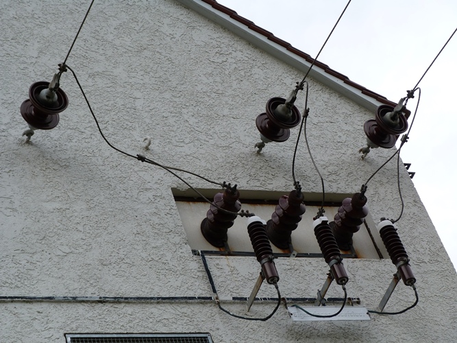 Diese Webseite wurde mit Stand Mai 2016 eingestellt [ weiterlesen ] Zur Hohenzollern- und Kreisstadt Sigmaringen gehören auch die Dörfer Gutenstein, Jungnau, Laiz, Oberschmeien und Unterschmeien. ![]() ![]() ![]() ![]() ![]() Die Centralstation Schloss Sigmaringen von 1893 Fotos: Pit Fischer, 23. März 2012 Unterhalb vom Schloss Sigmaringen, nicht weit von der Donau, befindet sich die alte Centralstation, in der heute das Kreismedienzentrum (siehe unten) untergebracht ist. Im ersten Moment scheint es verwunderlich, in einer oberschwäbischen Kleinstadt eine solch alte und groß dimensionierte Stromversorgung vorzufinden. Wer einmal an einer der interessanten Schlossführungen teilgenommen hat, kennt den Grund: Die hier residierenden Hohenzollern waren im 19. Jahrhundert für moderne Technik und neuzeitlichen Komfort sehr aufgeschlossen und hatten bereits elektrisches Licht und fließend Kalt- und Warmwasser im Schloss, als solche Dinge für Privatleute noch viel zu teuer waren. Hinzu kam, dass der damals 73jährige Fürst Karl Anton an einem Augenleiden erkrankte und im Jahr 1884 von seinem Leibarzt elektrisches Licht verordnet bekam. So geschah es, dass bereits 1884 elektrische Glühbirnen (1879 von T.A.Edison erfunden) im Schloss Einzug hielten. Der Strom wurde anfänglich von einem "Lokomobil" erzeugt. Die elektrische Schlossbeleuchtung kostete damals 3.593 Mark (heute umgerechnet ca. 43.000 Euro). Die bürgerlichen Häuser in Sigmaringen wurden mit Wachskerzen, ab 1840 auch mit Petroleum- und Spirituslampen beleuchtet und bekamen erst sehr viel später elektrisches Licht. Das damals im Besitz der Hohenzollern befindliche Hüttenwerk Laucherthal (bei Sigmaringendorf) hatte eine Wasserturbinenanlage von 400 PS (294,4 kW). Im Jahr 1893 wurde von hier eine Freileitung (2.200 Volt, wahrscheinlich Gleichstrom) gebaut, die nun 200 PS (147,2 kW), also die Hälfte des in Laucherthal erzeugten Stroms, nach Sigmaringen lieferte. Die Freileitung führte in Sigmaringen zunächst zu einer "Sekundärstation". In dieser befanden sich eine Schaltstation, ein Maschinensaal und ein großer "Accumulatorensaal". Die Akkumulatoren waren nötig, um bei Stillstand des Stromerzeugers (Dampfmaschine, Wasserturbine,...) dennoch Energie liefern zu können. Bis heute hat die Akku-Speichertechnik Platz- und Gewichtsprobleme, denkt man einmal an Photovoltaikanlagen oder Elektroautos. Im späten 19. Jahrhundert erforderten die Akkumulatoren einen ganzen Saal zur Aufstellung. Der Vorteil des Gleichstroms: Er ist speicherbar. Wechselstrom muss immer im Moment des Verbrauchs erzeugt werden. Der Maschinensaal der Sekundärstation war mit einem Umformeraggregat ausgestattet. Zu dieser Zeit war das noch eine Verbindung eines Motors mit einem Generator. Je nach Auswahl konnte ein Gleichstrommotor (2,2 KV) mit einem Gleichstromdynamo für 110/220 Volt gekoppelt werden oder ein Wechselstrommotor mit einem Gleichstromdynamo. Diese verlustbehaftete Umformungsgeschichte wurde erst mit der Einführung bzw. Verbreitung von Wechselspannung, insbesondere in Form des Dreiphasendrehstroms und der Nutzung von Transformatoren nach und nach verdrängt. Erste positive Erfahrungen in dieser Richtung datieren jedoch erst ab 1891 mit der Kraftübertragung Lauffen am Neckar nach Frankfurt am Main. Dass über Fernleitungen auch Gleichstrom übertragen werden konnte, hatte ein Experiment in Bayern in den 1880er Jahren bewiesen. Damals wurde ein Gleichstrom mit etwa 2 KV Spannung von Mießbach nach München geschickt. Die Verluste waren enorm aber es hat funktioniert. Die Sekundärstation entspricht in ihrer Funktion also nicht einer Trafostation, sondern einer Umformerstation für Gleichstrom. Bei Gleichstrom gibt es ja nicht die Möglichkeit der klassischen Transformation, Gleichstrom folgt anderen elektrischen Gesetzmäßigkeiten. Auch die Umformerwerke der Deutschen Bahn (meist in Verbindung mit einem klassischen Unterwerk (110 KV auf 15 KV bei 16,7 Hz) sind keine direkten Trafostationen. Sie verändern hauptsächlich die Netzfrequenz und damit auch die Netzform (Dreiphasendrehstrom des öffentlichen Stromnetzes mit 50 Hz in Einphasenwechselstrom mit verminderter Frequenz). Ein klassisches Unterscheidungsmerkmal zwischen Umformer- und Trafostation war früher und gilt bis heute: Transformatoren stehen still, Umformersätze rotieren - bis zur Einführung moderner Leistungshalbleiter, dann war es auch damit endgültig vorbei. Die Sekundärstation in Sigmaringen wurde später abgerissen. Von der Sekundärstation führte ein "Speisekabel" mit Gleichstrom zu unserer Centralstation: 110 Volt Gleichstrom für den Lichtstrom und 220 Volt Gleichstrom für Kraftstrom ("Bügeleisenstrom"). Von der Centralstation wurden über einen Verteilermast Schloss, Rathaus und Marstall (fürstliches Gebäude für Pferde, Wagen, Kutschen und Geschirr) mit Strom versorgt: insgesamt 3.000 Lampen und 1 Bügeleisen. Es handelte sich hier um ein Gleichstrom-Dreileiternetz. Die Centralstation war also auch keine Trafostation, sondern eine Verteilerstation für Gleichstrom. Uns liegt eine Kopie eines Schwarzweißfotos aus dem Jahr 1894 vor, auf dem die Centralstation und daneben der Verteilermast zu sehen ist. Für das alte Foto haben wir leider wegen ungeklärter Copyright-Situation keine Bildfreigabe vom Schloss Sigmaringen erhalten. Das Bild zeigt den kunstvollen Gittermast und die Isolatoren an der Hauswand. Immer drei Drähte gehörten zusammen. Deshalb waren auf den Stahlträgern sechs Isolatoren nebeneinander (Typ Reichspostmodell). Zwischen einem Außenleiter und dem Mittelleiter lagen 110 Volt Gleichspannung an, zwischen beiden Außenleitern 220 Volt. ![]() ![]() ![]() ![]() ![]() ![]() Das Elektrizitätswerk Sigmaringen von 1896 Fotos: Pit Fischer, 23. März 2012 Ab 1914 beliefert die EVS Biberach (Energieversorgung Schwaben) das E-Werk Sigmaringen "Tag und Nacht" mit Drehstrom. Am 1. Januar 1995 übernehmen die Fürstlich-Hohenzollersche Elektrozentrale Sig