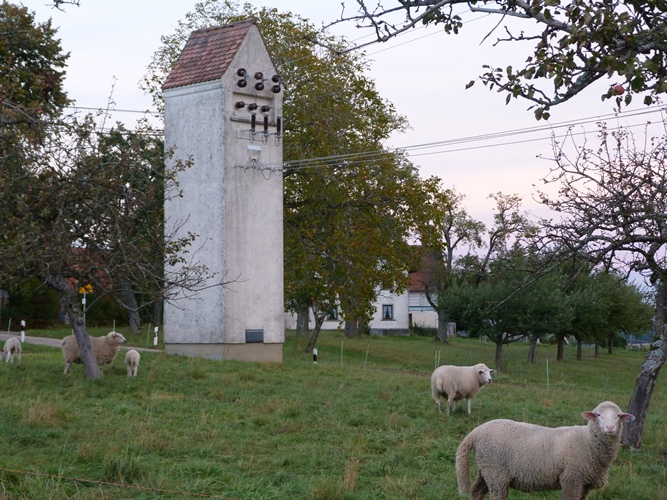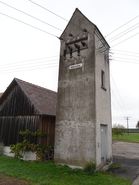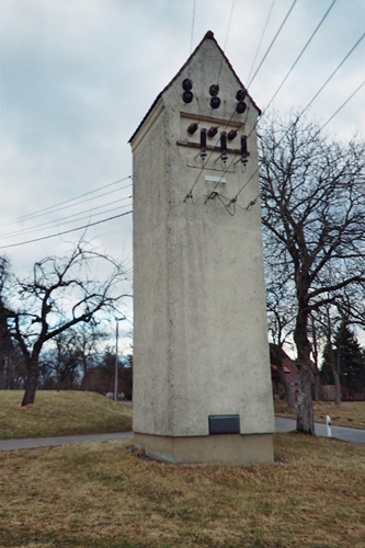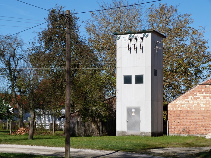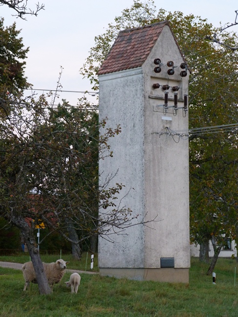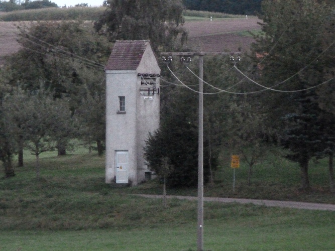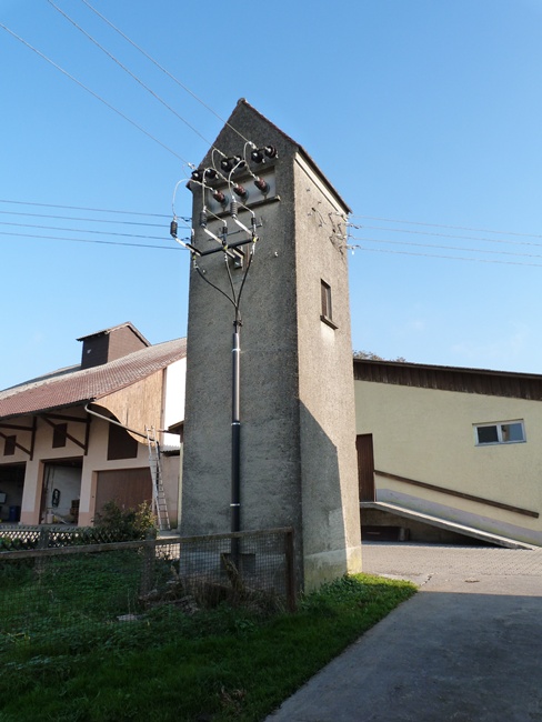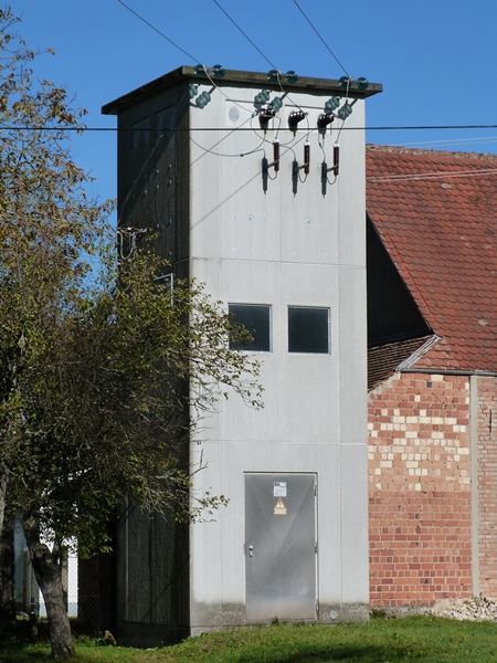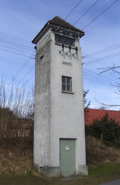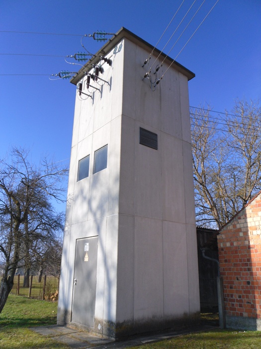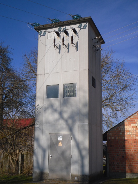 Diese Webseite wurde mit Stand Mai 2016 eingestellt [ weiterlesen ] Zur Gemeinde Wald gehören u.a. auch die Dörfer Reischach, Riedetsweiler, Rothenlachen, Ruhestetten, Sentenhart und Walbertsweiler. ![]() ![]() ![]() ![]() ![]() ![]() Die Umspannstelle Wald-Sägeweg, rechts die Walder Störche auf dem Strommast Fotos: Pit Fischer, 2011 / Storchenfotos: Elvira von Seydlitz, 3. August 2012 Die 10-Dörfer-Gemeinde Wald liegt 20 Kilometer nördlich des Bodensees in der südlich der Schwäbischen Alb vorgelagerten Endmoränenlandschaft der letzten Eiszeiten, jeweils etwa acht Kilometer von den Städten Meßkirch und Pfullendorf entfernt. Die Bilder rechts zeigen das Walder Storchennest, das sich auf einem Niederspannungs-Strommast befindet (mitten im Ort, hinter der Volksbank). Aber keine Angst: den Klapperstörchen droht hier kein Stromtod. Die isolierten Freileitungen, die hier eingesetzt sind, sind sogenannte Schwedenkabel, die durch ihre PE-Ummantelung keine Gefahr für Vögel darstellen. Weitere Informationen zu diesem Thema gibt es auf unserer Themenseite Vogelschutz. ![]() ![]() ![]() ![]() ![]() ![]() ![]() ![]() Die Umspannstation Wald Kindergarten Fotos: Pit Fischer, Dez. 2010 (links) und 19. Okt. 2012 (rechts) Die Turmstation in Plattenbauweise wurde von der Fa. Marbeton hergestellt. Marbeton, ansässig in Aitrach im Landkreis Ravensburg, erstellte früher - als Turmstationen noch häufig gefragt waren - gerade in Oberschwaben und im Bodenseegebiet, das quasi für Marbeton vor der Haustür lag, viele dieser Plattenbauten. Auch in dieser Fotosammlung werden Sie immer wieder auf Exemplare dieser Bauform stoßen. Die Umspannstation Wald Kinderkarten ist auch Bildband von Illo-Frank Primus, Geschichte und Gesichter der Trafostationen auf Seite 220 mit einem ganzseitigen Foto vertreten. ![]() ![]() ![]() ![]() ![]() ![]() Das Schaltwerk Wald Fotos: Pit Fischer, 2011 Bei der Anlage handelt es sich um ein sogenanntes Lastverteilerwerk, das die Verteilung der Mittelspannung in der Umgebung regelt, siehe ausführlich unter Schaltwerke. Zusätzlich ist ein Transformator im Gebäude: es geht auch eine Niederspannungsleitung zur Versorgung der örtlichen Haushalte ab. ![]() ![]() ![]() ![]() ![]() ![]() Die Umspannstelle Reischach Fotos: Richard Molke, 2011 ![]() ![]() ![]() ![]() ![]() ![]() Die Umspannstelle Riedetsweiler Fotos: Pit Fischer, 2011 ![]() ![]() ![]() ![]() ![]() ![]() ![]() ![]() ![]() ![]() ![]() ![]() ![]() Die Umspannstation Rothenlachen Photos: Richard Molke, März 2010 und Pit Fischer, 24. Sept. 2012 (untere Reihe) Wie eine Landmarke steht das Türmchen an der Grenze der Kulturlandschaften Oberschwabens und des oberen Linzgaus, die Aussicht nach Süden ist zauberhaft. Bei Föhn kann man von hier die Alpen sehen. ![]() ![]() ![]() Der Trafoturm Ruhestetten Photos: Pit Fischer, 2008 Der Ruhestetter Stromturm ist gleichsam der ruhende Pol des malerischen, am Rande des gleichnamigen Ruhestetter Rieds gelegenen kleinen Dorfes. ![]() ![]() ![]() ![]() ![]() ![]() ![]() ![]() ![]() ![]() ![]() Die Umspannstation Ruhestetten Bohlerhöfe Obere Reihe: © Siegfried Endres, 2010 und 2013 Mittlere Reihe: Richard Molke, 2008 Untere Reihe: Pit Fischer, 2012 In der unteren Bildreihe ist ein "putziges" Detail zu sehen: ein Schuhkratzer links neben der Tür. Die Sträßchen nach Ruhestetten und zu den Bohlerhöfen waren nicht immer geteert und bei Regen und Matsch verwandelten sich die Feldwege in lehmigen Morast. Mit dem praktischen Schuhkratzer (Schuhabstreifer, Schuhschaber) konnte das Wartungspersonal die Stiefel und Schuhe grob vom Straßenschmutz befreien und die elektrische Anlage im Innern blieb sauber. Bereits bei der Trafostation Kippenhausen konnte unser Fototeam einen solchen Schuhabstreifer entdecken (siehe dort ausführlich zum Thema Schuhkratzer). Danke an den Fotografen Siegfried Endres, der uns das Schwarzweiß-Bild und das Nachtfoto in der oberen Reihe zur Verfügung gestellt hat. Auch bei den Bildern von Richard Molke handelt es sich um analoge Aufnahmen. ![]() ![]() ![]() ![]() ![]() ![]() ![]() ![]() ![]() ![]() ![]() ![]() ![]() ![]() ![]() ![]() ![]() ![]() ![]() ![]() ![]() ![]() Die Umspannstation Sentenhart Kirche als Tierhotel Fotos: Pit Fischer, 2008 (obere Reihe Bild 1 und 2 links) und Januar 2011 (oben rechts) zweite Reihe: Mai 2011, dritte Reihe: 14. Okt. 2012 unten von links nach rechts: Stationsschild der Turmstation, Schild der Betonstation, Insektenhotel Der stillgelegte Trafoturm und die daneben stehende Betonstation befinden sich in Sentenhart in der Ringstraße 2, direkt bei der weithin sichtbaren Kirche. Stromturm und Kirchturm bilden hier eine fotografisch reizvolle Doppelspitze. Beton-Fertigstation ersetzt die Turmstation Die aus dem Betrieb genommenen Turmstation genügte den heutigen Anforderungen nicht mehr. An ihrer Stelle hat noch zu Zeiten des Badenwerks (das zum 31.12.1996 gemeinsam mit der EVS in die heutige EnBW überging) eine neue Station die Stromversorgung übernommen, die links neben der Turmstation errichtet wurde. Dabei handelt es sich um eine begehbare Fertigstation der Fa. Betonbau mit der Markenbezeichnung UFK-Station. Dieser Stationstyp ist in Deutschland der einzige, der seit 1965 bis heute mit unverändertem Grundriss von 2,88 x 2,16 m geliefert wird und von dem im ehemaligen Versorgungsgebiet der Badenwerk AG sicher über 5000 Stück errichtet wurden (1990 hatte sie 25-jähriges Jubiläum und 4000 Stück erreicht), meist mit Flachdach und Überdach-Rundumentlüftung, gelegentlich auch - wie hier - mit werkseitig geliefertem Satteldach und dunklen eloxierten Alu-Türen. Die alte Turmstation weist durch die Hanglage eine kleine architektonische Besonderheit auf, die sie von anderen Stationen dieser Bauform unterscheidet. Der Turm ist etwas in das Gelände eingelassen, deshalb ist der untere Teil von starkem Betonbau umfangen. Durch diese Sicherungsmaßnahme der verstärkten Außenwände im Parterrebereich (statt des sonst übli
