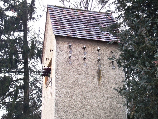 Ein stillgelegter Trafoturm in Gersthofen