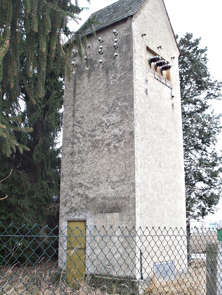 Die bereits stillgelegte Turmstation in der Westendstraße 17 versorgte die nahegelegene Feuerwerksfabrik Sauer mit Strom,