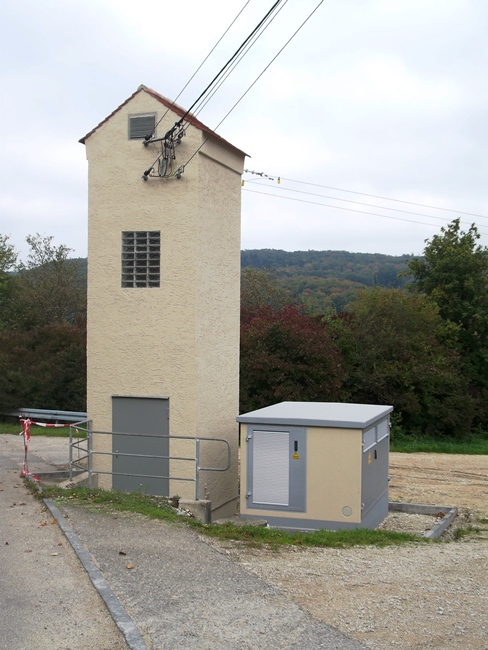 Die Turmstation in Gosheim (betrieben von der Lech-Elektrizitätswerke AG Augsburg LEW) steht in der Brunnengasse und hat