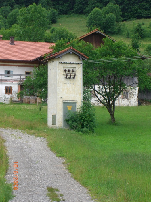 Dieses oberbayrische Trafohäuschen steht nicht weit vom Bodensee-Königssee-Radweg zwischen Grassau und dem Museum Salz und Moor
