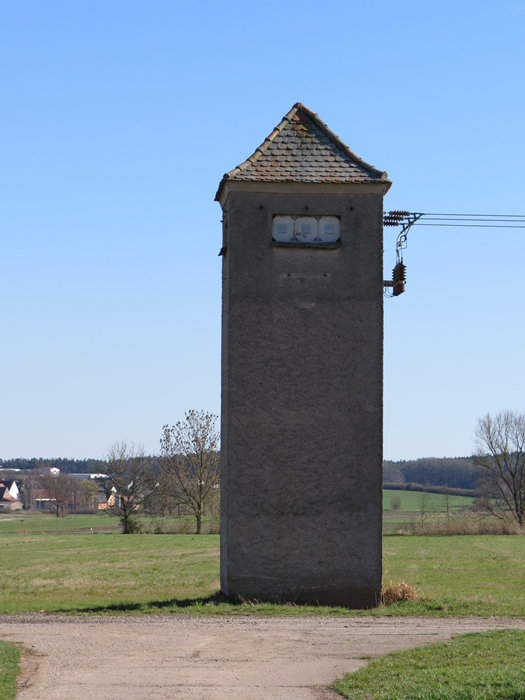 die Gemeinde. Im kleinen Dorf Sambach (ca. 600 Einwohner) steht dieser schlichte Trafoturm, der zum Zeitpunkt der Fotoaufnahme noch