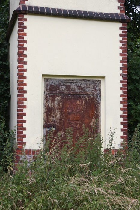 Von den ehemaligen Mittelspannungseingängen sind die Wanddurchführungen entfernt, eines der Löcher steht