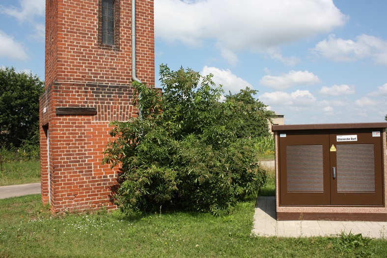 namens 'Glienecke Dorf' führt den Betrieb des Turmtrafos weiter (siehe mittleres Foto oben). Die ehemaligen Freileitungen sind durch