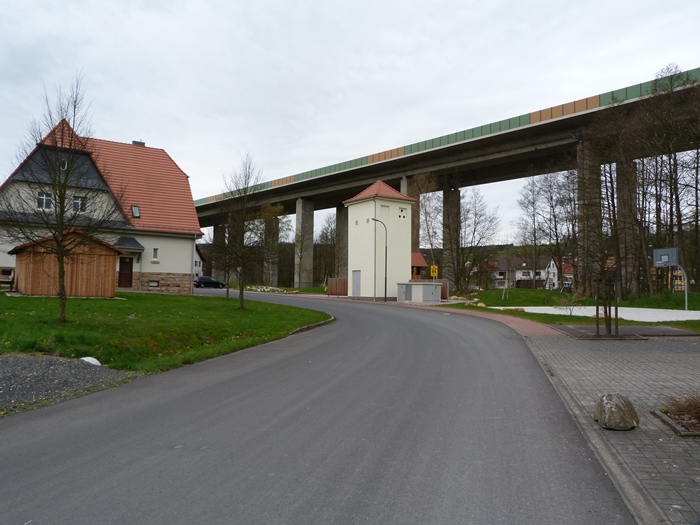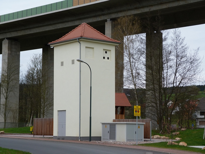 Die stillgelegte Turmstation steht in der Mottener Straße unterhalb der Autobahnbrücke (A7) beim Tennisclub Uttrichshausen.