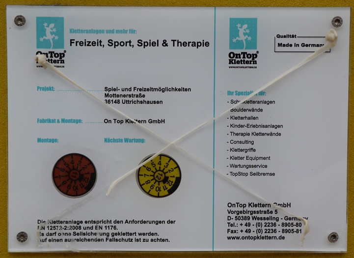 geklettert werden. Auf einen ausreichenden Fallschutz ist zu achten". Die Informationstafel ist originalversiegelt mit