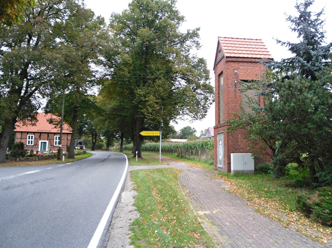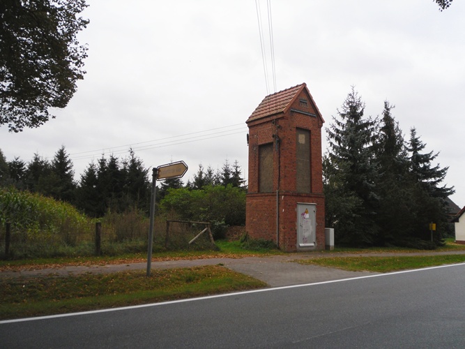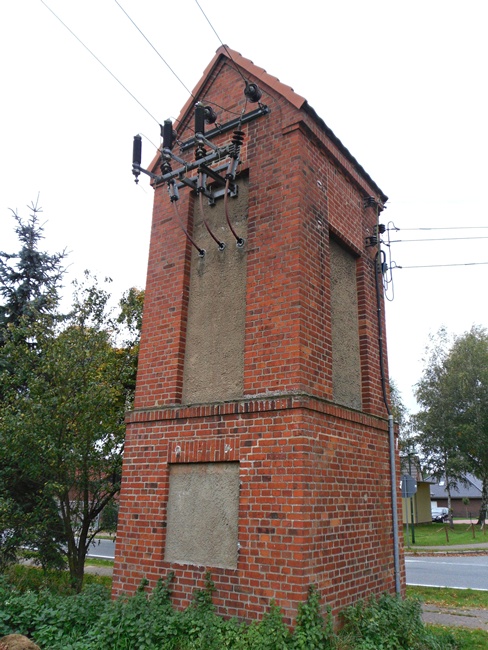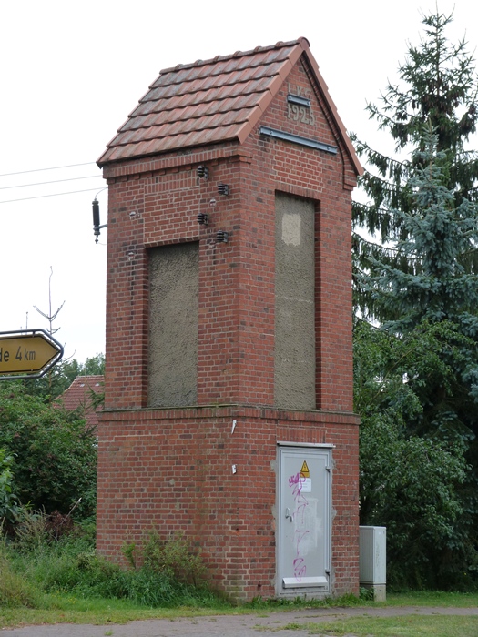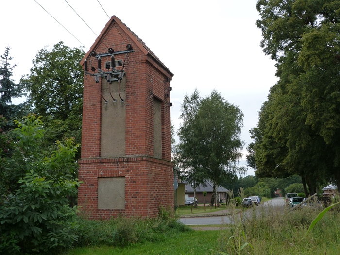 Die backsteinerne "Transformatorenstation Lüttenmark, Bundesstr." der Westmecklenburgischen Energieversorgung AG