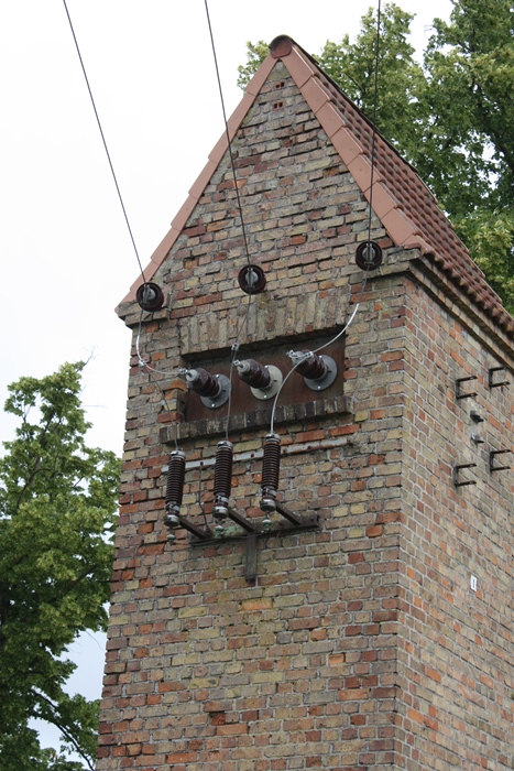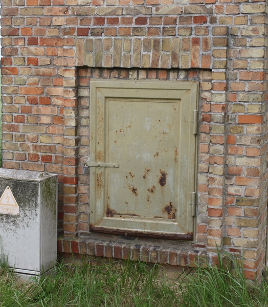 schon unter die Erde verlegt. Vom ehemaligen Niederspannungsabgang sind oben an der Wand noch die Halterungen (Schäkel)