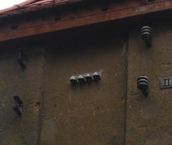 Auf drei Seiten der Turmstation waren Niederspannungsabgänge, wobei stets vier der noch erhaltenen Tüllen zu einem