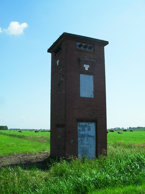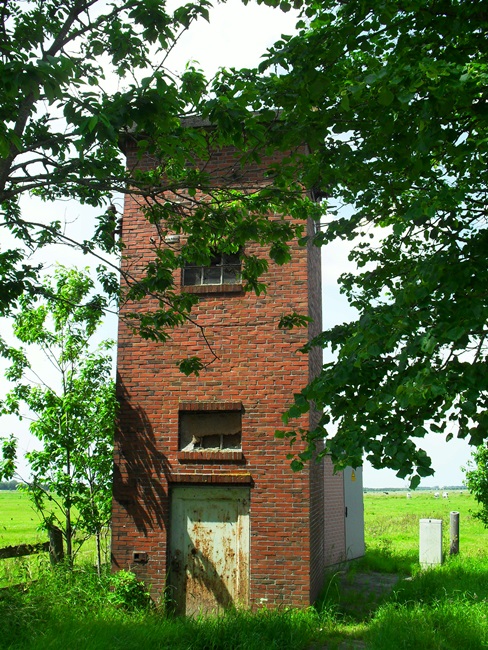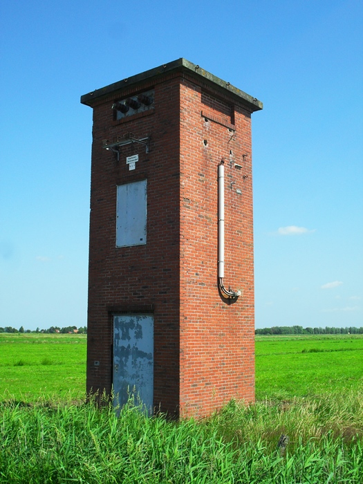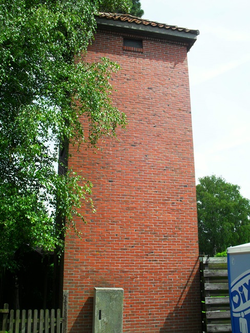 Etwas nördlich von Emden, nicht weit von Suurhusen, steht dieser Backsteinturm am Treckweg in der flachen ostfriesischen Landschaft.