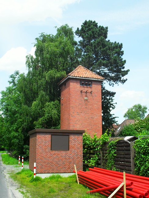Auch dieses Exemplar wurde in traditioneller Backsteinbauweise errichtet. Die Turmstation mit Pyramidendach steht im Wiesenweg, nicht weit von der Wolthuser Straße und der Uphuser Straße in der Nähe des Ems-Jade-Kanals.
