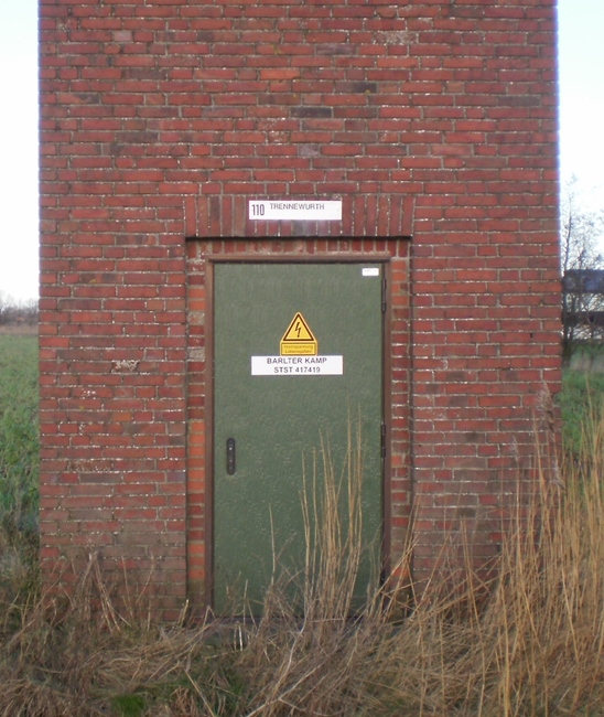 sind noch in Funktion. Ein Schild "110 Trennewurth" über der Tür