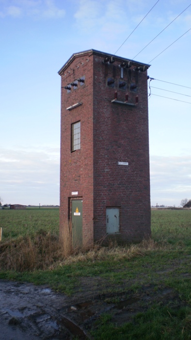 deutet darauf hin, dass hier eine Freileitung zur Nachbargemeinde Trennewurth geht oder ging.