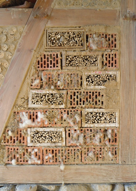 verschiedenartige Behausungen für Wildbienen und andere Insekten zu sehen.