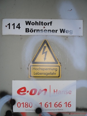 zwischen der Gemeinde Wohltorf und der Kreisgruppe: der Trafoturm am Wohltorfer Kirchberg, direkt an der Grenze zu Aumühle gelegen.