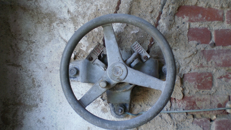 Auf dem mittleren Foto der oberen Reihe sehen wir ein Handrad mit Kettenantrieb für den Trennschalter in Schalterstellung