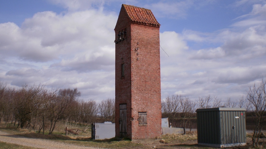 Der alte Trafoturm in traditionell nordischer Ziegelbauweise und die schon etwas modernere, aber ebenso für Dänemark