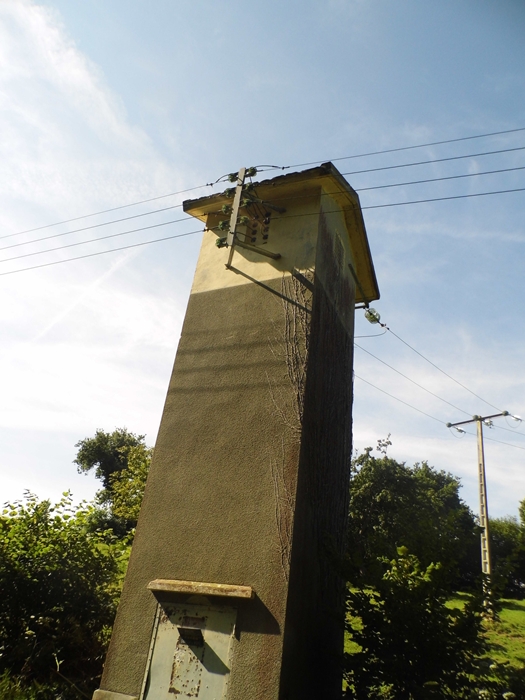 Beim kleinen Dorf Kerlavrec steht diese imposante alte Turmstation. Der Trafo ist offensichtlich noch in Betrieb und hängt