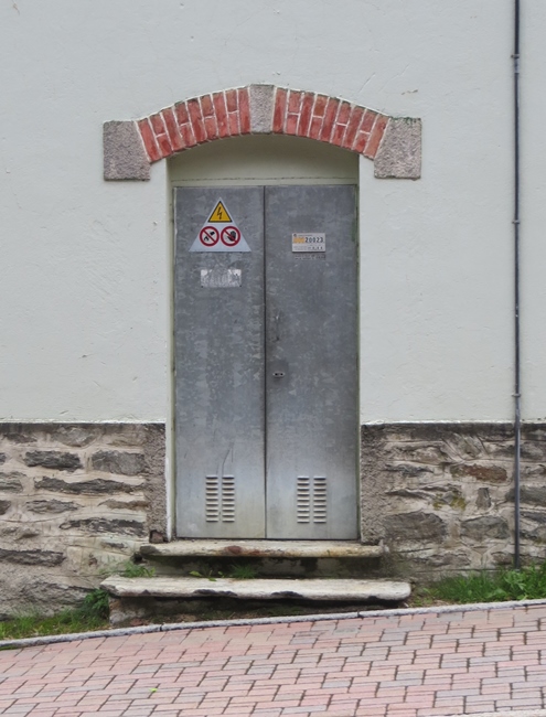 Trafostation ungewöhnlich großen Fenstern.
