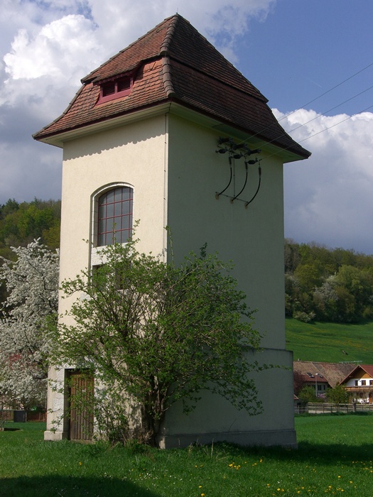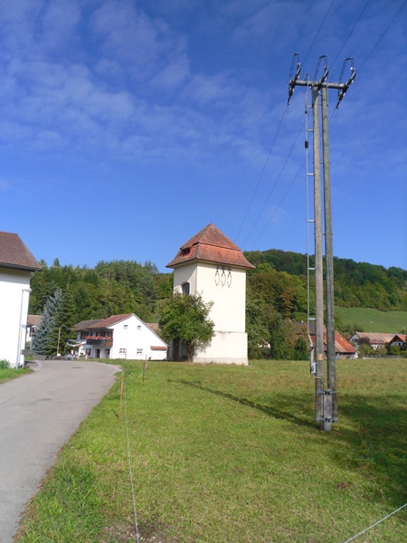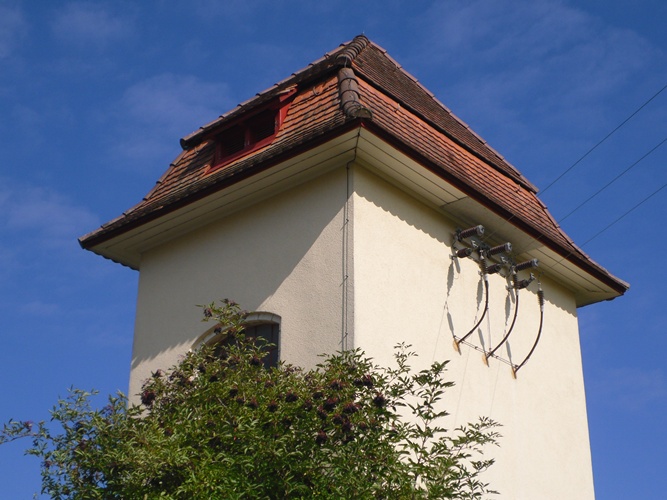 Diese Webseite wurde mit Stand Mai 2016 stillgelegt [ weiterlesen ] Zur Gemeinde Thayngen gehören auch die Dörfer Altdorf, Barzheim, Bibern, Hofen und Opfertshofen. ![]() ![]() ![]() ![]() ![]() ![]() ![]() ![]() ![]() ![]() ![]() ![]() ![]() ![]() ![]() ![]() ![]() ![]() ![]() ![]() Das Transformatorenhaus "Station Dorf" in Hofen von 1909 Fotos: Friedbert Kowalsky, 2010 (Bilder 1 u. 2 links oben) und Pit Fischer, 2011 (übrige) Dieses außergewöhnliche Trafohaus steht einige hundert Meter hinter dem Grenzübergang von Büßlingen (Landkreis Konstanz) Richtung Schaffhausen im kleinen Dorf Hofen in der Bruggwiesenstrasse, gegenüber Haus Nr. 10, am östlichen Ortsrand. Ein älterer Dorfbewohner aus der Nachbarschaft des Turms erzählte uns, dass die Strasse früher Fabrikstrasse hieß. Das würde auch das Hausnummernschild "38" über der Tür erklären. Die Station sei wegen der hier ansässigen Zündel'schen Ziegelwerke gebaut worden. Durch die Ziegelfabrik sei Hofen das erste Dorf mit Strom in der ganzen Region gewesen. 1908 befürwortete das Schaffhauser Stimmvolk die Gründung des Elektrizitätswerks des Kantons Schaffhausen, welches in der Folge in zügiger Aufbauarbeit ein elektrisches Leitungsnetz für den gesamten Kanton schuf (ausgenommen die Gemeinden Schaffhausen und Hallau, die bereits über eigene Elektrizitätswerke verfügten). Das Transformatorenhaus in Hofen wurde bereits 1909 durch das Elektrizitätswerk des Kantons Schaffhausen erbaut. Es ist ein wichtiger Zeuge der technischen Infrastruktur im ländlichen Raum und dokumentiert den Beginn der Elektrifizierung Hofens. Der in seiner äusseren Form ursprünglich erhalten gebliebene, turmartige Massivbau mit verputzten Fassaden und ziegelgedecktem Mansardwalmdach setzt im ebenen, von Wiesen un Äckern geprägten Gelände einen weithin sichtbaren architektonischen Akzent. Als zeittypisches Bauwerk der ländlichen Stromversorgung weist er eine zurückhaltende architektonische Gestaltung auf, die vom damals sich durchsetzenden Heimatstil beeinflusst ist. Charakteristisch sind der rohe Behau und die Quaderhaftigkeit der Kalksteingewände, ebenso der Turmhelm. Über einem verputzten, als Sockel ausgebildeten Erdgeschoss tragen die Obergeschosse einen rauhverriebenen, beige gestrichenen Putz (vermutlich von einer nachträglichen Fassadensanierung stammend). Die von Hausteinquadern eingefasste Eingangstür sitzt in der zur Strasse hin ausgerichteten Südfassade. Auch die sich auf der Süd- und Nordseite in den Obergeschossen öffnenden Fenster weisen gehauene Gewände aus Kalkstein auf. Die Fenster heben sich gestalterisch in besonderer Weise aus den sonst schmucklosen Fassaden hervor. Sie sind jeweils als Dreiergruppe angeordnet und werden durch den weissen Kalkstein der Gewände formal zusammengefasst: unten zwei kleine Rechteckfenster, oben ein grossflächiges Stichbogenfenster mit gesprosster Verglasung. West- und Ostseite sind nicht befenstert. An der Ostseite schliessen die Drähte der zuführenden Freileitungen an. Einst gingen von der Turmwestseite die Leitungsdrähte Richtung Dorf. Heute geschieht die Verteilung über erdverlegte Kabelleitungen. Produziert wurden in der ehemaligen Ziegelei u.a. Backsteine, hochwertige Dachziegel, Röhren und Tontöpfe, die mit Pferdefuhrwerken ausgeliefert wurden. Der fehlende Bahnanschluss und die Erschöpfung des Rohstoffvorrates waren die Gründe, warum die Fabrik 1917 zum größten Teil abgerissen wurde. Teilweise sind die Fabrikgebäude um die Trafostation noch erhalten, allerdings nicht mehr als solche erkennbar, da sie verändert, umgebaut und mit Anbauten versehen wurden. Das Haus neben der Transformatorstation sei die Kantine gewesen. "Die Ziegelei Hofen wurde 1834 gegründet und nahm 1861 ihren Betrieb auf. Ab 1870 gehörte die Fabrik zu den Vereinigten Ziegelwerken Thayngen, Hofen und Rickelshausen (Zündel & Cie Thayngen). Der Betrieb beschäftigte 100 Personen. Der Ton wurde in der "Lättgrueb" gewonnen und mittels einer 400 m langen Drahtseilbahn zur Fabrik transportiert. Als Erinnerung an diese Zeit führt heute noch die Kanalstaubrücke (siehe drittes Bild von links, obere Reihe) bei der Wuhr über die Biber." (Andreas Meile, Quelle siehe unten) Weiterhin erzählte uns der Anwohner, dass der Turm auch für den Naturschutz genutzt werde. Durch Schlupflöcher im Obergeschoss haben z.B. Greifvögel Zugang. Bis vor ca. 15 Jahren seien Schleiereulen drin gewesen, heute wohnen hier Turmfalken, deren Jungen vom kantonalen Vogelschutz beringt werden. Yvonne Scheiwiller schreibt in ihrem 2013 erschienenen Buch "Trafoturm - Turmtrafo" (Schwyz, Triner Verlag, ISBN 978-3-908572-59-6) auf Seite 113 über diese Station: "Es ist erstaunlich, wie ein so kleiner Kanton wie Schaffhausen sich entscheiden konnte, so grosse Trafos zu erstellen - und dies schon 1909. Die Grosstrafos von Schaffhausen Land nahmen ihren Anfang im Gründungsgesetz von 1908, mit dem man das Ingenieurbüro A. Strelin in Zürich beauftragte, Trafos und Verteilanlagen zu planen. Gebaut wurde TS DORF in Hofen bei Thayngen an der Bruggwiesenstrasse von der Baufirma G. Grossweiler & Cie. Es gibt weitere ähnliche Trafos im Kanton Schaffhausen." Unser Kollege von swisstrafos.ch schreibt in seinem Artikel über diese Station: "An der Bruggwiesenstrasse erstellte die Baufirma Grossweiler & Cie. nach den Plänen des Ingenieurbüro A. Strelin Zürich zur flächendeckenden Elektrifizierung des Kantons 1909 die ästhetisch gelungene Trafoturmstation Dorf. Im Gegensatz zu weiteren vergleichbaren Stationen auf dem Kantonsgebiet von Schaffhausen handelt es sich hierbei um den grössten Trafoturm. Über dem Sockelgeschoss liegt leicht zurückversetzt der Oberbau. Darüber befindet sich ein Mansarddach. Im oberen Teil liegen die grossen Sichtbogenfenster, welche von zwei quadratischen Fenstern untersetzt sind. Sowohl die Fenster wie auch die Zugangstüre an der Gebäudefront sind von Steinquadern umgeben." Quelle: swisstrafos - Ho
