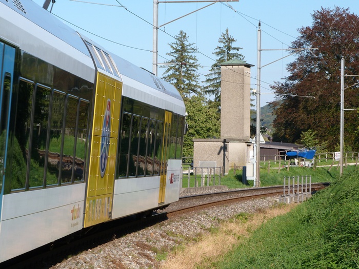 Die stillgelegte Trafostation steht zwischen Steckborn und Mammern direkt an der Untersee-Bahnlinie, ungefähr zwischen Schloss Glarisegg und Schulstiftung Glarisegg. Von Schloss Glarisegg aus kann man zu Fuß über einen kleinen Bahnübergang dorthin gelangen und nebenbei auch die Aussicht auf den Bodensee (Untersee) genießen, der nur einige Meter entfernt ist und hier vom Rhein durchflossen wird. Der schlanke, fensterlose, zweitürige, grob verputzte Turm ist komplett leer. Von der ehemaligen elektrischen Anlage ist nichts mehr übrig, wie ein Blick durch die offenstehende Tür ins Innere zeigt (Aufnahmen untere Reihe). Man wundert sich, wie bei diesem kleinen Grundriss früher die Technik Platz gehabt hat.