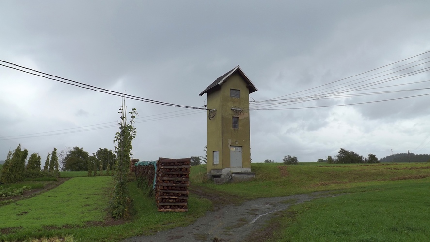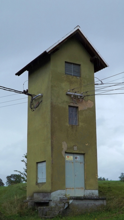 Das alte Trafohäuschen mit einem hübschen biberschwanzgedeckten Dach steht exponiert am Ortsausgang von