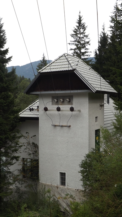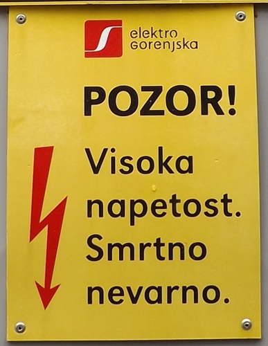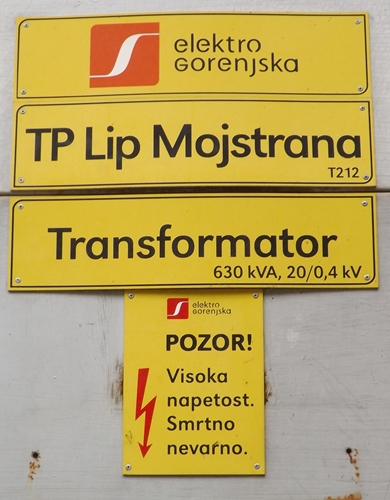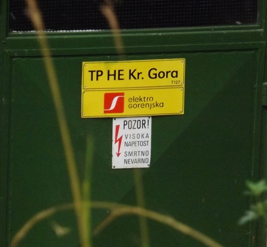 Diese Webseite wurde mit Stand Mai 2016 stillgelegt [ weiterlesen ] Zur Gemeinde Kranjska Gora (deutsch: Kronau) gehören u.a. auch die Dörfer Belca, Dovje, Log, Mojstrana und Zgornja Radovna. ![]() ![]() ![]() ![]() ![]() ![]() Die Trafostation TP Pozarje in Kranjska Gora Fotos: Harry Frießem, 12. September 2014 Geografische Koordinaten: 46° 28' 57.57" N 13° 46' 55.40" E Das schmucke Türmchen macht einen gepflegten Eindruck. Die ehemaligen Freileitungen sind hier bereits auf Erdkabel umgestellt worden, ein letztes Schwedenkabel führt noch durch die Luft zur Versorgung eines benachbarten Hauses. Im Hintergrund ist der Prisojnik zu sehen, ein Berg der Julischen Alpen. Kranjska Gora (deutsch: Kronau) liegt im äußersten Nordwesten Sloweniens in der Region Gorenjska (Oberkrain), zwischen den westlichen Ausläufern der Karawanken im Norden und den zentralen Julischen Alpen im Süden. Zur österreichischen Grenze (Wurzenpass) sind es von hier nur knapp drei Kilometer, zur italienischen Grenze bei Ratece fünf Kilometer. Südlich von Kranjska Gora liegen der Werschetzpass und die Gemeinde Bovec. ![]() ![]() ![]() Die Trafostation TP HE Kr.Gora in Kranjska Gora Fotos: Harry Frießem, 12. September 2014 Geografische Koordinaten: 46° 28' 32.38" N 13° 46' 51.91" E Hier sind noch Freileitungen in Betrieb, auf dem Foto ist ein Mittelspannungseingang an der Turmstation zu sehen. Die Ausschnittsvergrößerung ganz rechts zeigt die Warntafel an der Stationstür, die auf die Gefahren durch elektrischen Strom im Turminnern hinweist, wo sich der Transformator befindet. Solche Schilder aus einigen europäischen Ländern haben wir auf unserer Seite Warntafeln an Trafohäuschen gesammelt. ![]() ![]() ![]() ![]() ![]() Die Trafostation Dovje Fotos: Harry Frießem, 12. September 2014 Geografische Koordinaten: 46° 27' 54.30" N 13° 56' 43.41" E Das Dach dieses wunderschönen Oberkrainer Trafohäuschen ist offensichtlich vor nicht allzu langer Zeit renoviert worden, es sieht aus wie neu. Die Ausschnittsvergrößerung ganz rechts zeigt die Warntafel an der Stationstür, die auf die Lebensgefahr durch elektrischen Strom im Turminnern hinweist. ![]() ![]() ![]() ![]() Die Trafostation Lip Mojstrana Fotos: Harry Frießem, 12. September 2014 Geografische Daten: 46° 28' 0.55" N 13° 55' 58.26" E Die Schilder an der Tür zeigen hier nicht nur den Stationsnamen, den Namen des Stromversorgungsunternehmes und die übliche Warntafel, sondern geben auch Auskunft über die Leistung des Transformators: 630 kVA, 20/04 kV. 630 kVA ist die Angabe der Scheinleistung (in Kilovoltampere). Sie setzt sich zusammen aus der Wirkleistung und der (unerwünschten) Blindleistung. Mojstrana liegt südlich von Dovje.