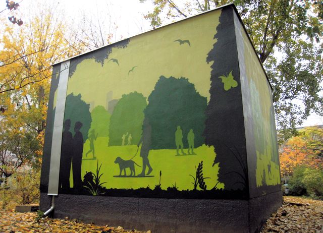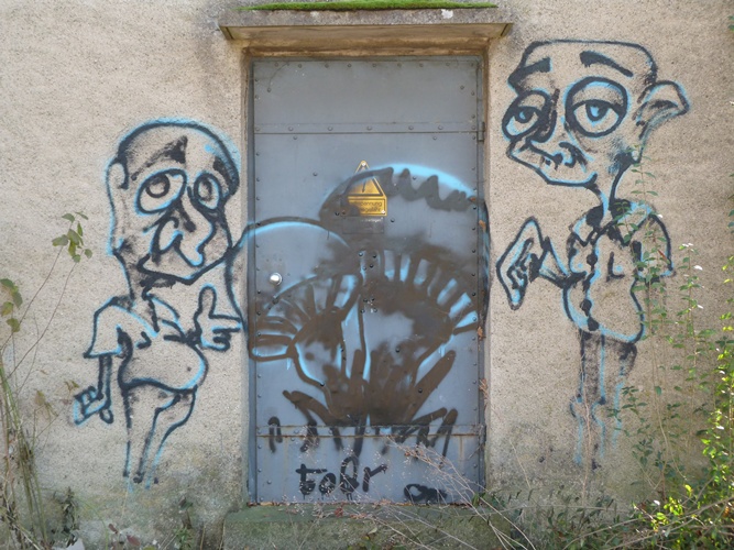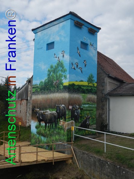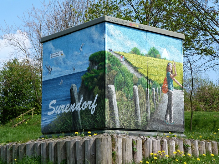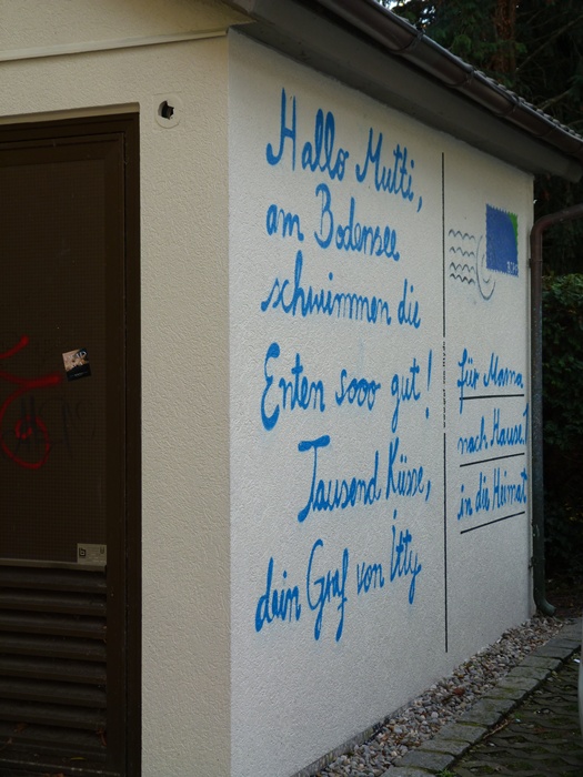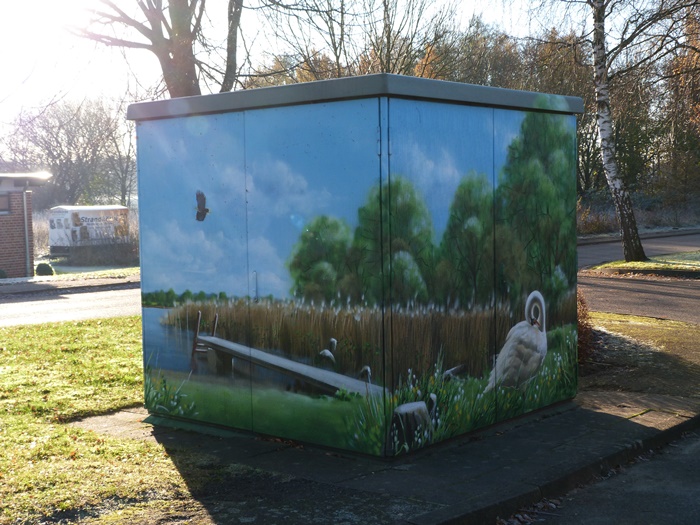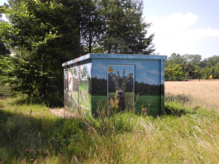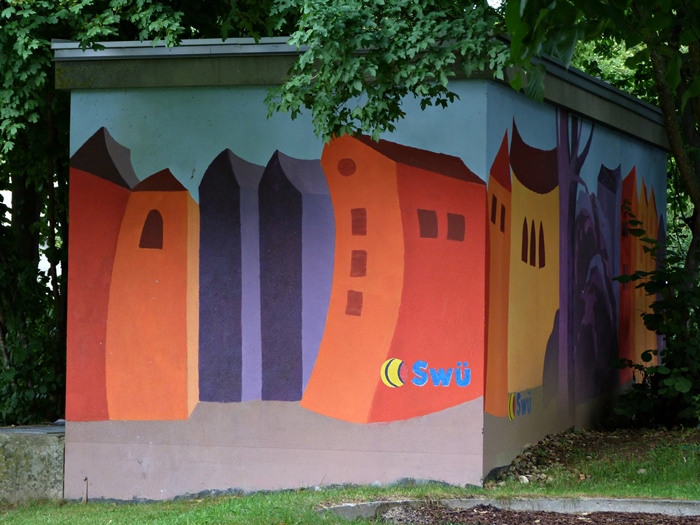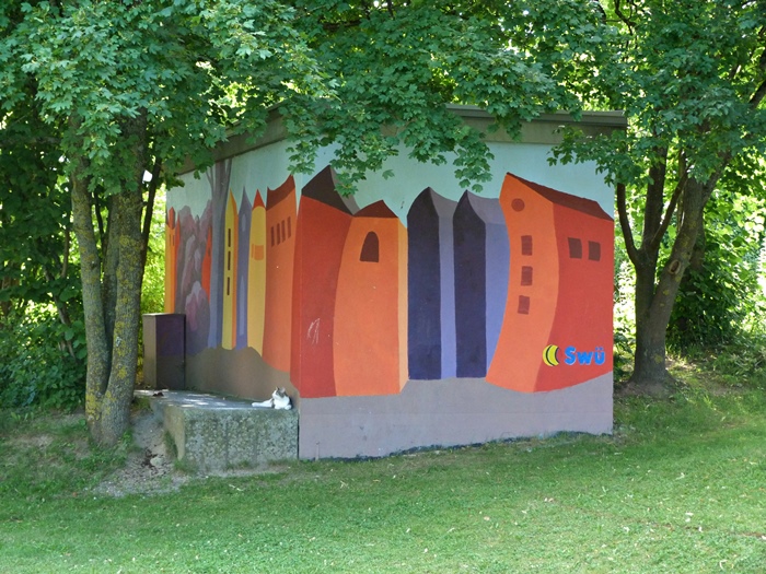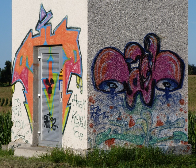 Diese Webseite wurde mit Stand Mai 2016 eingestellt [ weiterlesen ] Durch Gestaltung mit Wandmalerei - oft in Sprühtechnik/Graffiti - erfahren Trafohäuschen in mittlerweile vielen Fällen eine Aufwertung. Dies gilt für alte stillgelegte Trafohäuschen, die sonst vielleicht abgerissen worden wären, aber besonders für neuere industriell gefertigte Kabel-Fertigstationen, die noch in Betrieb sind und meistens als hässlich und gesichtslos empfunden werden. Der Bogen spannt sich von Kunst über Kitsch bis zu illegalen Graffitis. Eine künstlerische Bewertung der Werke überlassen wir gerne berufeneren Kritikern - ohne uns die spontane und völlig unwissenschaftliche Begeisterung für einzelne Arbeiten nehmen zu lassen. In einigen Fällen bedienen sich Künstler bei der Neugestaltung von Trafostationen der Illusionsmalerei oder Scheinarchitektur, auch Trompe-l'œil genannt ("täusche das Auge", von französisch tromper "täuschen" und l'œil "das Auge"). Illusionsmalerei spiegelt dem Betrachter das Vorhandensein baulicher Elemente und Einrichtungen vor, die real nicht existieren. Nachfolgend stellen wir einige Beispiele aus allen Bereichen vor: ![]() ![]() ![]() ![]() ![]() Der Trafoturm in Berg - "Fensterln" als Motiv der Illusionsmalerei Fotos: © Max Hergenröder, 16. Juni 2013 Der bayerischen Umgebung angemessen haben die Künstler das allseits bekannte Motiv des "Fensterlns" gewählt, eine Art der süddeutschen Brautwerbung, die in früheren sittenstrengen Zeiten oft die einzige Möglichkeit war, dem anderen Geschlecht näher zu kommen. Ein junger Bursche versucht der bereits wartenden Geliebten seine Aufwartung zu machen, indem er mit Hilfe einer Leiter zum Fenster hinaufsteigt, in der Hoffnung mitsamt der mitgebrachten Rose dort Einlass ins Schlafgemach zu finden. Die Fortsetzung der Geschichte sehen wir in der zweiten Szene an der rückwärtigen Fassade des Turms: Der erboste und auf die Keuschheit der Tochter bedachte Vater hat Lunte gerochen und hält auf dem Balkon Ausschau nach dem Eindringling, der sich mit letzter Kraft unten am Balkon festhält - die mitgebrachte Rose immer noch quer im Mund. Die Angebetete hält sich angesichts der verzweifelten Lage ihres Verehrers vor Schreck die Hände vor den Mund. Liebevoll ausgeführte Details faszinieren den Betrachter: Blumen an den Fenstern, aufgestapeltes Brennholz, die Katze beobachtet eine Maus - oder schnurrt sie? Typisch für Art-EFX ist auch die Einbeziehung von außen angebrachten Utensilien: Hier ist es ein Schaltkasten, der zu einem altertümlichen Briefkasten umgestaltet und in das Gesamtkunstwerk integriert wurde. Die Bezeichnung 'Illusionsmalerei' erhält hier sogar eine doppelte Bedeutung: einmal wird dem Betrachter durch künstlerische Technik das Vorhandensein baulicher Elemente (Türen, Fenster, Balkone...) vorgetäuscht, zum zweiten kann er eintauchen in die wohlige Illusion einer gemütlichen 'guten alten Zeit', die uns ein Stückchen heile Welt vorgaukelt, als 'alles noch besser' und 'die Welt noch in Ordnung' war. ![]() ![]() ![]() ![]() Die Trafostation Gnoien - Ein Meisterwerk der Illusionsmalerei Photos: © Benjamin Braune, Oktober 2012 ![]() ![]() vorher - nachher ![]() ![]() ![]() ![]() ![]() ![]() ![]() ![]() Das Trafohäuschen Oberteuringen als KunstRaum Turm Fotos: © Angela Schneider, Bruno Rauscher und Friedbert Kowalsky, 2012 ![]() ![]() ![]() ![]() Die Trafostation Überlingen Tulpenweg Photos: © Pit Fischer (Bilder links), 2012 und © Helga Sebecke (rechts), 2010 ![]() ![]() ![]() ![]() ![]() Die Trafostation Frickingen Austraße Photos: © Graf von Itty (Bilder links) und © Pit Fischer (rechts), 2012 ![]() ![]() ![]() Die Trafostation Schmidstraße, Berlin Mitte Fotos: © Frau Tonari, Oktober 2012 ![]() ![]() ![]() ![]() ![]() Die Transformatorenstation Nr. 522 Klinkertorplatz in Augsburg Graffiti-Projekt der Stadtwerke Augsburg bringt AEV- und FCA-Fans zusammen - und Spieler machen mit Fotos: © swa/Thomas Hosemann, 28. September 2013 ![]() ![]() ![]() Die Trafostation Mittlerer Graben in Augsburg Fotos: © Richard Molke, Mai 2013 ![]() ![]() ![]() ![]() ![]() ![]() ![]() Photos: © Pit Fischer, 2011 und 2012 Die Trafostation Überlingen Felderhaus: Ein Trafohäuschen als Bodensee-Ansichtskarte an Mutti, mit Vorder- und Rückseite, Briefmarke und allem Drum und Dran. Die Trafostation Überlingen Alte Nussdorfer Straße: Lasst Blumen sprechen! Flower Power in Pinseltechnik auf einer Betonfertigstation. Künstlerin: Helga Sebecke aus Überlingen-Nußdorf Die Trafostation Sassnitz Weddingstraße: Der Rabe Krax und die Maus Mimi werben farbenprächtig für das Nationalpark-Zentrum Königsstuhl auf der Insel Rügen. ![]() ![]() ![]() ![]() ![]() Photos v.l.n.r.: © Klaus Hänel 2013 (1+2), Michael Magnussen 2014 (3), Pit Fischer 2013/2012 (4+5) Die Trafostation Blankensee: Ländliche Idylle mit gackernden Hühnern vor einem vermeintlichen Heuschuppen auf einer Kabelstation in Brandenburg. Die Trafostation Siethen Jütchendorfer Straße: Wilde Tiere sehen dich an, auf einer Kompaktstation in Brandenburg. Die Trafostation Laboe an der Kieler Förde: Gans mit Sonnenbrille und U-Boot. Die Trafostation Pülsen: Idylle am Selenter See in der Probstei, Schleswig-Holstein. Die Trafostation Neuhaus Markt: Störche in der Elbtalaue, Niedersachsen. ![]() ![]() ![]() ![]() Photos v.l.n.r.: © Pit Fischer 2012/2013/2015, Manfred Kühl 2014 Die Trafostation Surendorf: Maritime Motive der Ostseesteilküste. Die Trafostation Katharinenhof: Bäuerliche Motive von anno dazumal auf der Insel Fehmarn. Die Trafostation Schmalensee: Landwirtschaftsmotive im Kreis Segeberg, Schleswig-Holstein Die Trafostation Babelsberg Fontanestraße: Wildschweine, Fuchs, Eichhörnchen und Buchfink an der Straßenbahnhaltestelle. ![]() ![]() ![]() Fotos: © Artenschutz in Franken 2013/2014/2015 Trafostation Walsdorf: Mehlschwalben und Fledermäuse in Oberfranken Trafostation Vierzehnheiligen: Vögel, Fledermäuse und Insekten in Oberfran